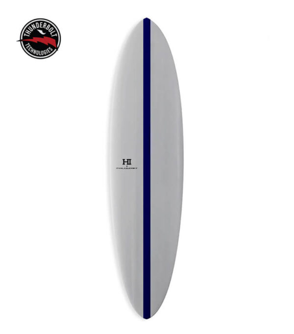 The fine, round pin tail, curvy plan shape, smooth rocker, with a bit of nose flip is equally comfortable turning deep in the pocket or long open-face arcs. High nose rails through to mid tucked and low hard in the tail, foiled from the centre for a nice balance of drive through sections while maintaining hold through tight turning arcs. While the Mid 6 fires in everyday surf, it is tuned enough to handle some pretty serious surf comfortably.